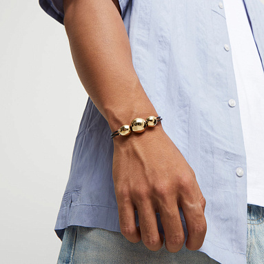 Описание Золотой браслет из бусин с натуральной кожей UNOde50 Ser Intrepida