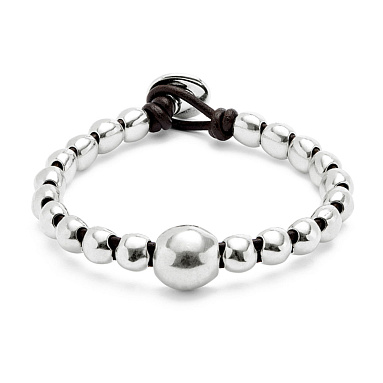 Дополните свой образ утонченным акцентом с помощью браслета Ser Intrepida с серебром, изготовленным вручную из уникального сплава. Этот стильный аксессуар сочетает элегантность и современный дизайн, идеально подходя для любых случаев. Украшение выполнено в виде цепочки из гладких металлических бусин, центральным элементом которой выступает крупная сферическая деталь. Эта комбинация создает гармоничный и сбалансированный вид. Основа из темного кожаного шнурка подчеркивает блеск серебрения. Этот браслет представляет собой идеальное сочетание стиля и качества. Добавьте в свой гардероб аксессуар, который подчеркнет вашу индивидуальность!
