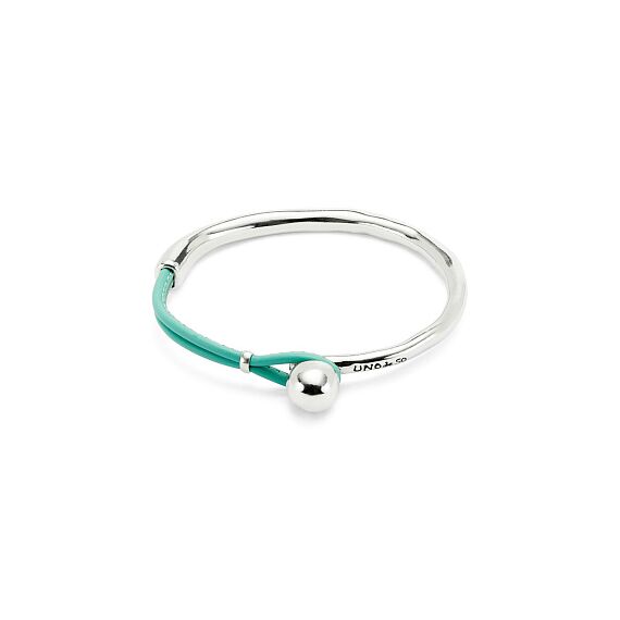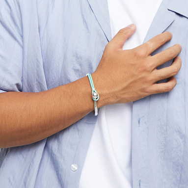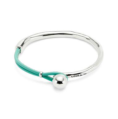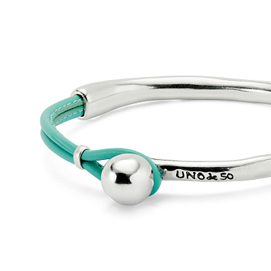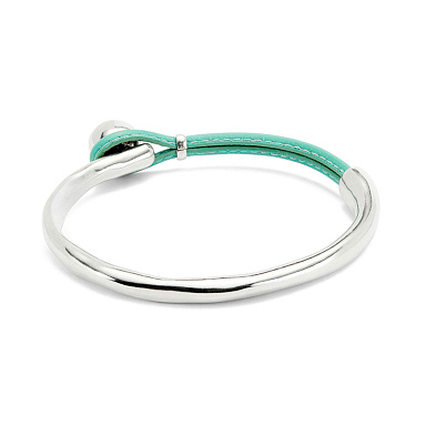 Будьте смелее в выражении своей индивидуальности, выбрав неординарный аксессуар — браслет Ser Intrepida с серебром и бирюзовой кожей. Аксессуар, изготовленный вручную из уникального сплава, представляет собой разомкнутое кольцо, которое завершается участком кожаного ремешка насыщенного бирюзового цвета. Текучие линии сверкающего серебрением металла контрастируют с мягкой текстурой и редким оттенком кожи. Креативная застежка, в которой кожаная петелька накидывается на металлическую шляпку, служит центральным элементом, добавляющим украшению оригинальности. Фирменная гравировка UNOde50 подчеркивает эксклюзивность изделия. Нетривиальный авторский дизайн украшения будет привлекать внимание, куда бы вы ни отправились, и позволит проявить свою творческую натуру.