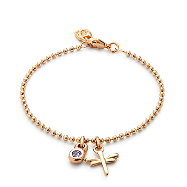 Почувствуйте себя легко и беззаботно благодаря браслету с кристаллом, с золотом, из коллекции SER UNICO. Собранный из металлических бусин аксессуар украшают две подвески: стилизованная стрекоза, символизирующая грациозность, и крупный граненый кристалл нежного розово-фиолетового оттенка, заключенный в оправу. Изделие ручной работы из уникального сплава имеет застежку-карабин, которая дополнительно декорирована фирменным замочком UNOde50. Элегантный аксессуар подойдет к любому образу и станет эксклюзивным украшением, подчеркивающим вашу женственность.