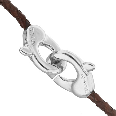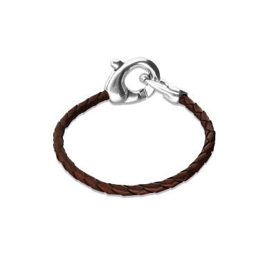 Плотный кожаный ремешок и массивный карабин создают выразительный дуэт: грубая фактура кожи подчёркивает блеск посеребрённого металла. Этот браслет словно говорит без слов — о надёжности, характере и уверенности в каждом движении. Он подходит тем, кто ценит минимализм, но выбирает вещи со смыслом.