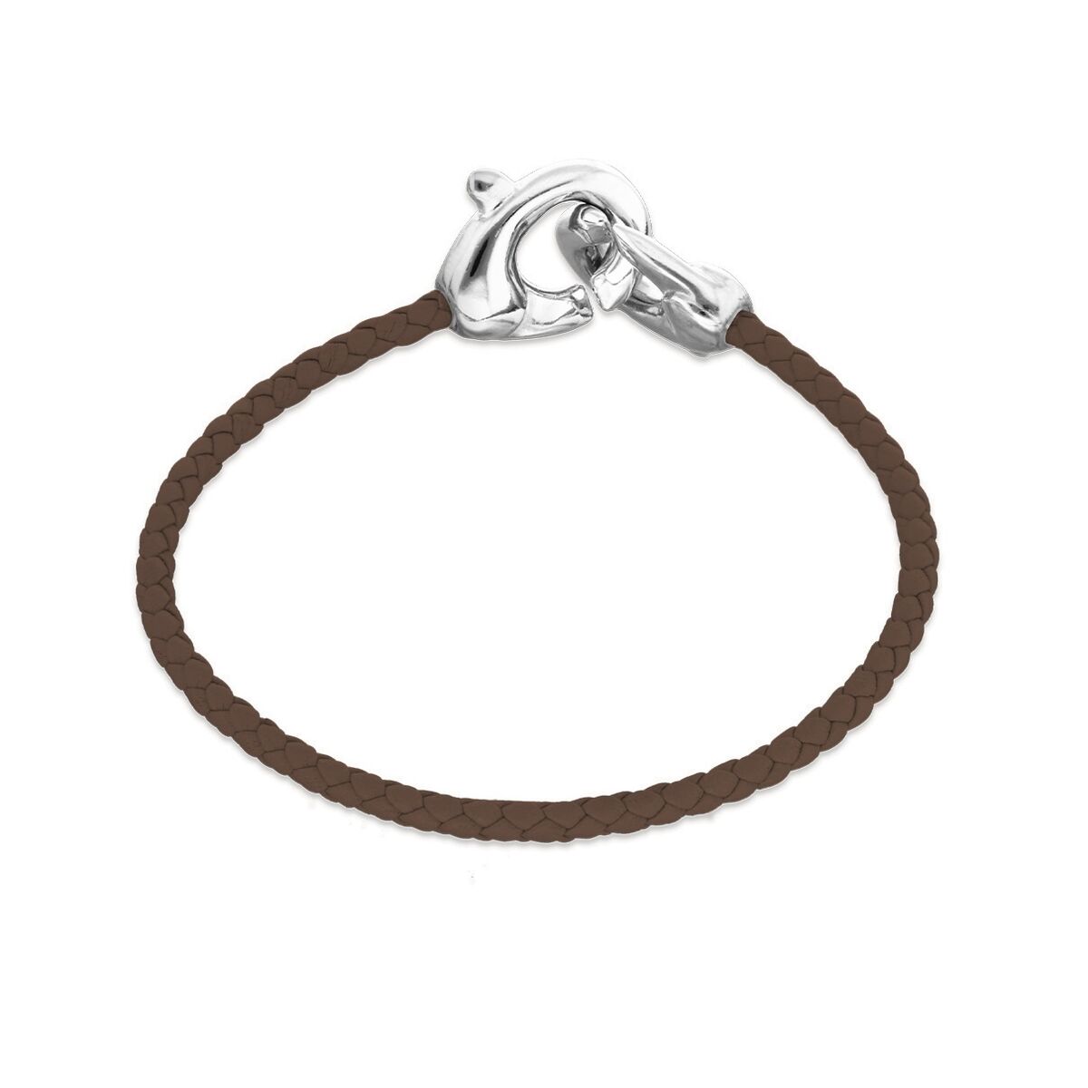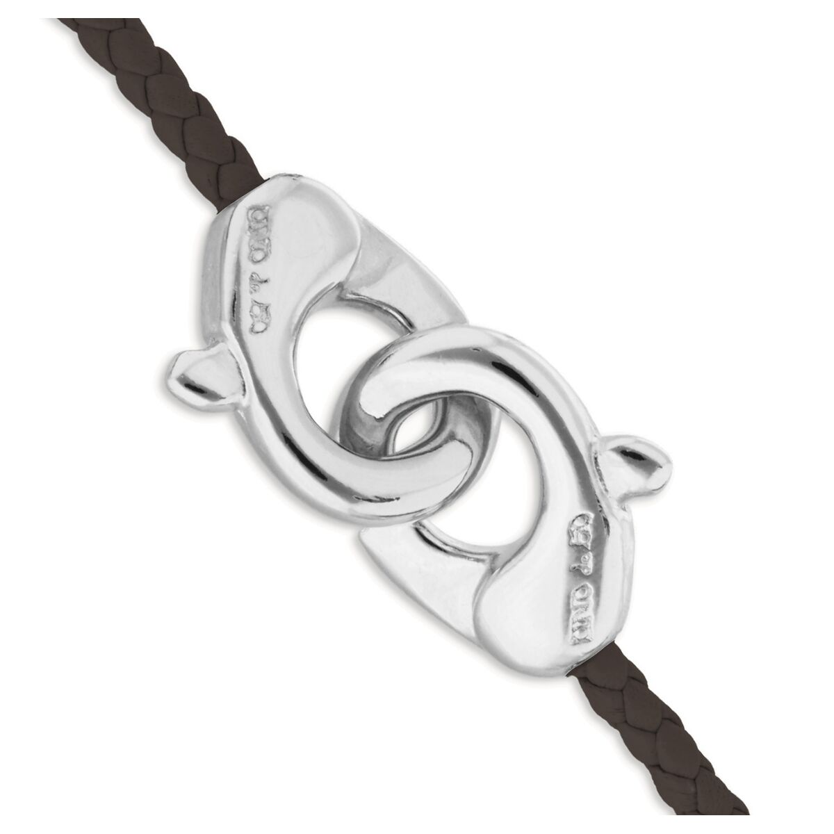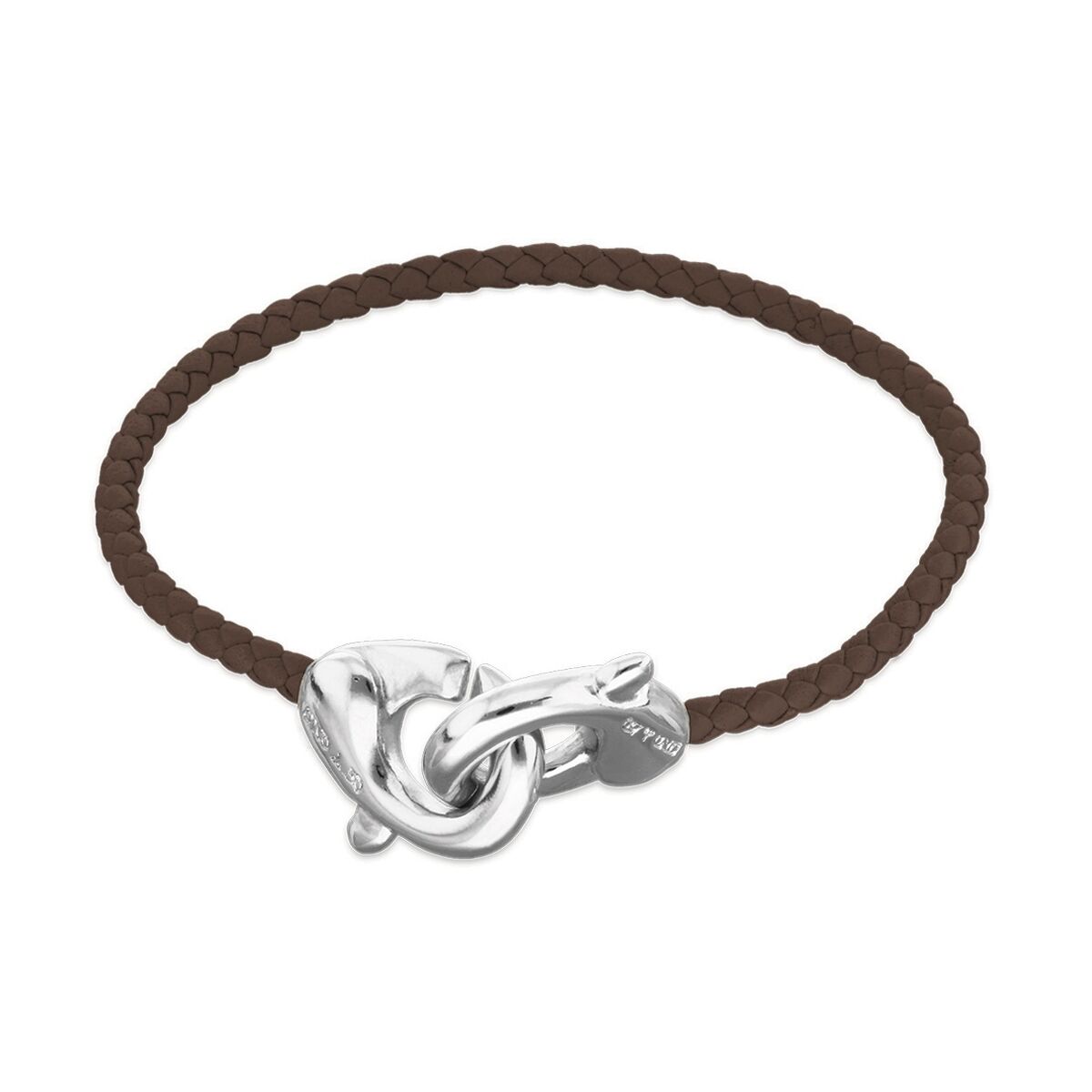 Кожаный коричневый браслет карабин с серебром UNOde50
