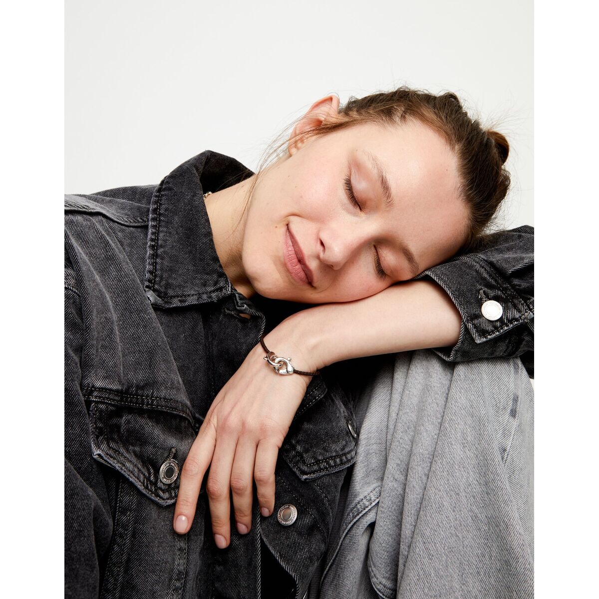 Плотный кожаный ремешок и карабин создают выразительное сочетание фактур и смыслов. Мягкое сияние серебра контрастирует с матовой кожей, подчеркивая характер владельца — уверенного, но не показного. Этот браслет о внутренней стойкости, спокойствии и чувстве меры.