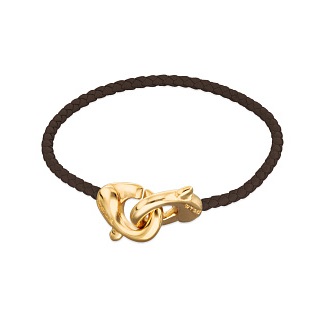 Коричневая кожа со временем становится мягче, приобретая индивидуальный оттенок, а позолоченная фурнитура сохраняет благородный блеск. Это украшение не просто деталь — это знак стабильности и внутреннего достоинства.