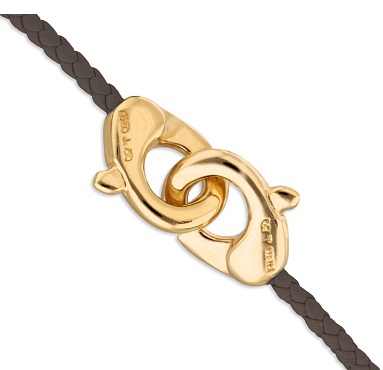 Кожаный коричневый браслет карабин с золотом UNOde50