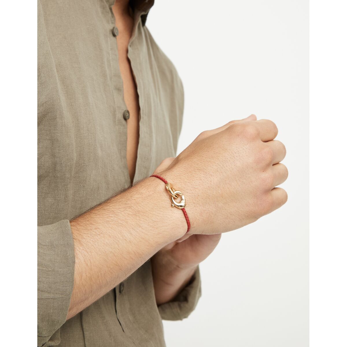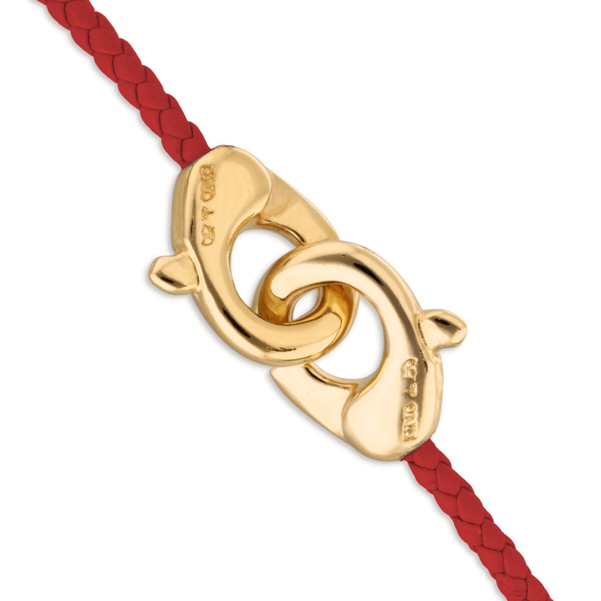 Яркий красный ремешок и мягкое сияние позолоченного карабина создают эффектное сочетание энергии и благородства. Этот браслет словно о смелости, внутренней силе и умении выделяться без лишних слов. Он идеально подойдёт тем, кто ценит яркие детали и аксессуары с характером.