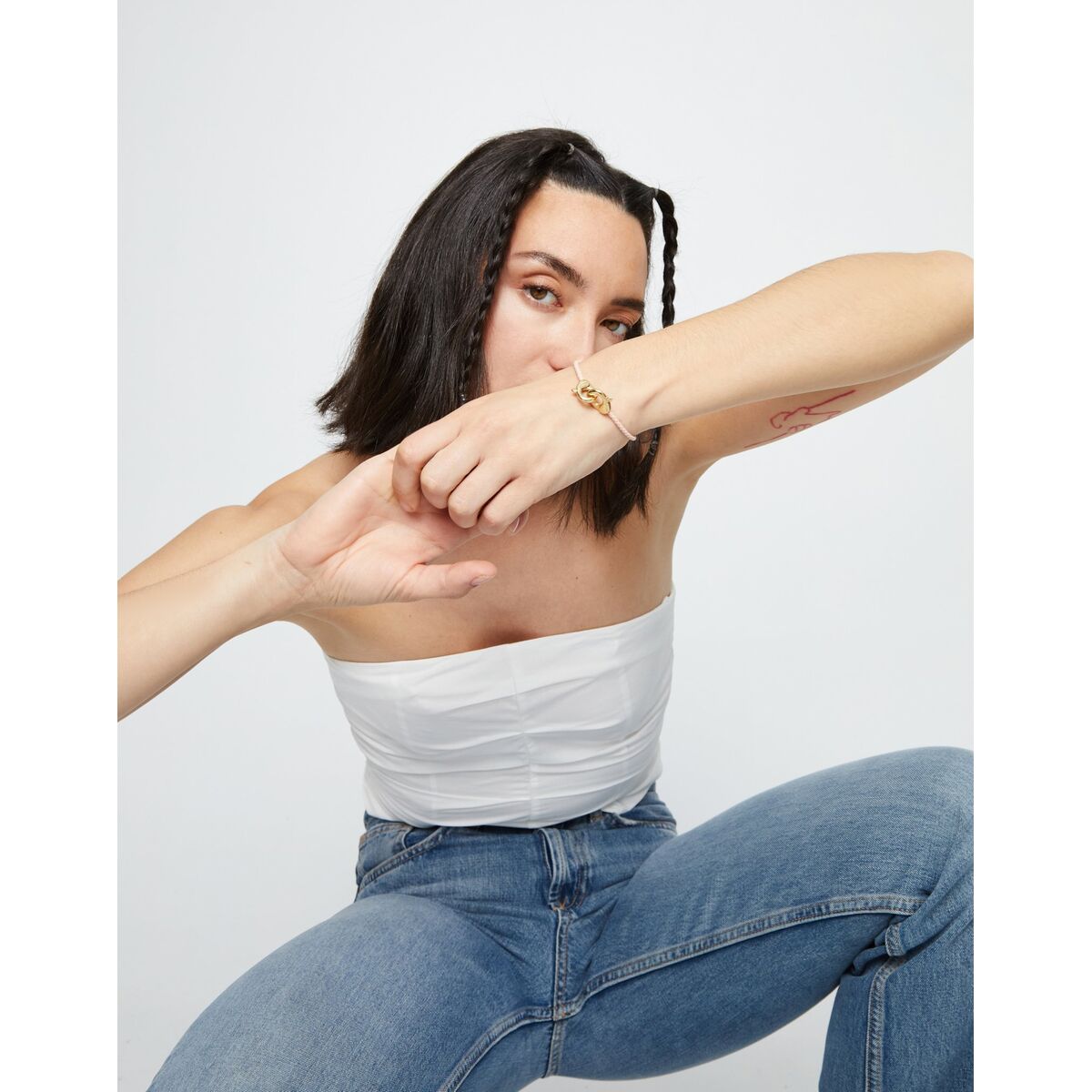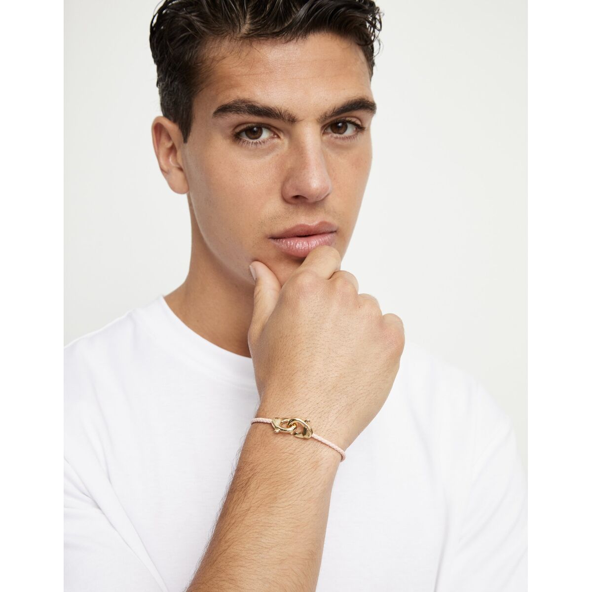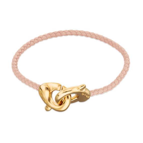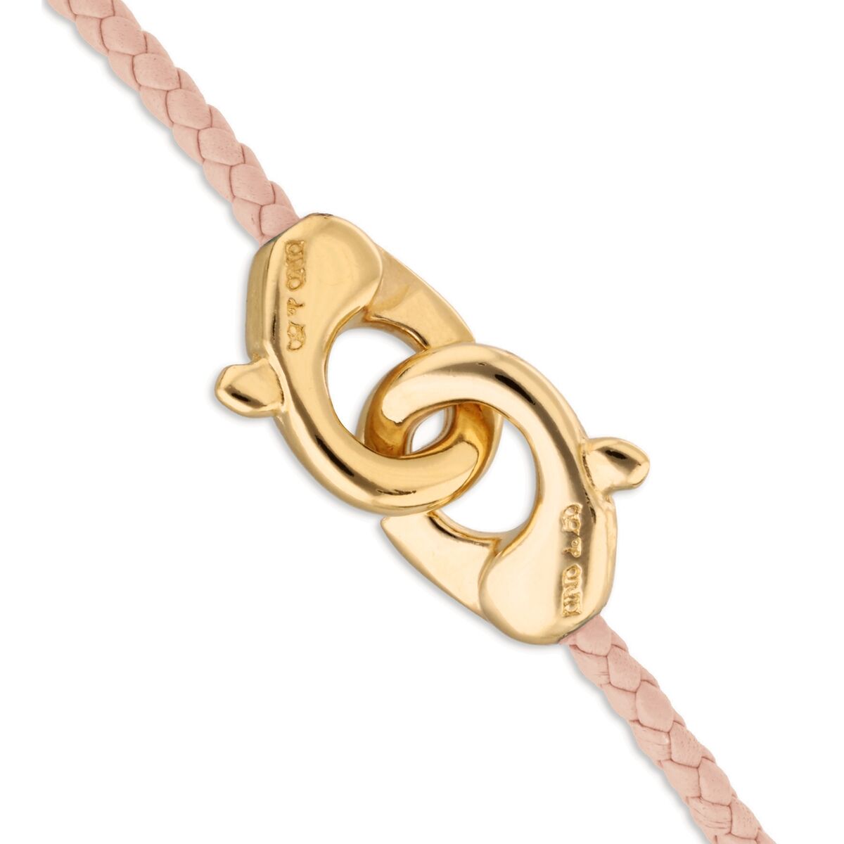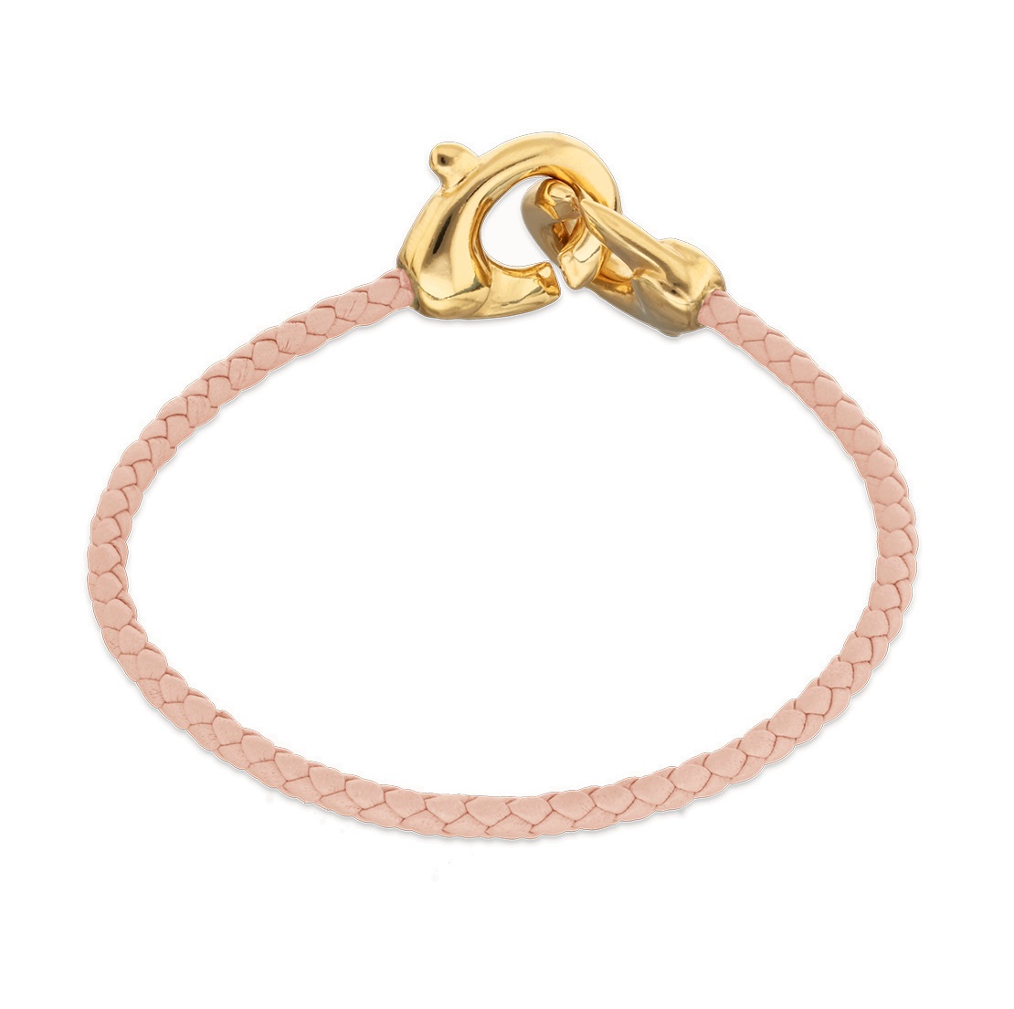 Плотный кожаный ремешок и карабин создают выразительное сочетание фактур и смыслов. Мягкое сияние золота контрастирует с матовой кожей, подчеркивая характер владельца — уверенного, но не показного. Этот браслет о внутренней стойкости, спокойствии и чувстве меры.