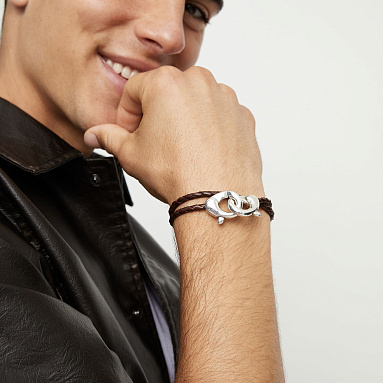 Ремешки со временем становятся мягче и приобретают индивидуальный оттенок, а посеребрённая фурнитура сохраняет блеск и чёткость линий. Двойной браслет подчёркивает характер владельца — стильный, уверенный и цельный.