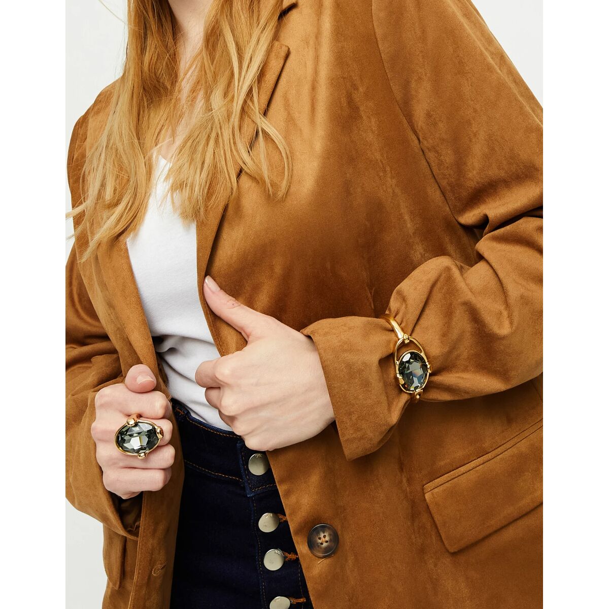 Этот дизайнерский браслет — ода двойственности: теплая, прочная структура обрамляет элегантный граненый кристалл глубокого графитово-серого тона.
