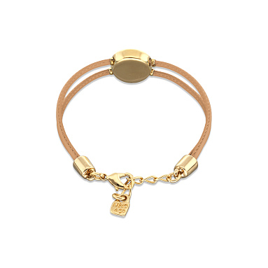 Тёплая позолоченная оправа придаёт украшению мягкость и изысканность, будто последние лучи заходящего солнца. Кожаный ремешок обнимает запястье легко и естественно, словно прикосновение самой природы.