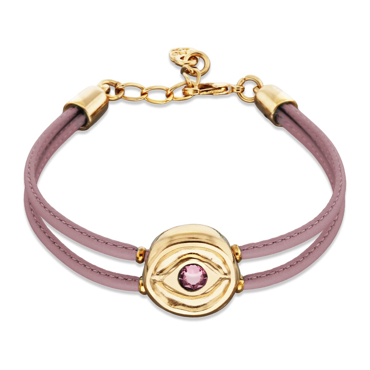 Тёплая позолоченная оправа придаёт украшению мягкое свечение и нотку изящной роскоши, а кожаный ремешок мягко ложится на запястье, создавая ощущение естественной элегантности и комфорта.