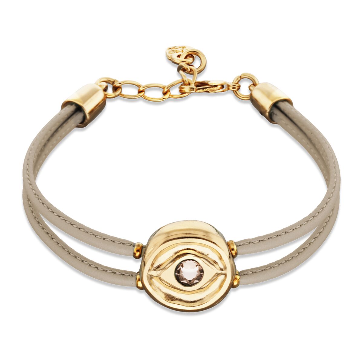 Тёплая позолоченная оправа придаёт украшению мягкое свечение и нотку изящной роскоши, а кожаный ремешок мягко ложится на запястье, создавая ощущение естественной элегантности и комфорта.