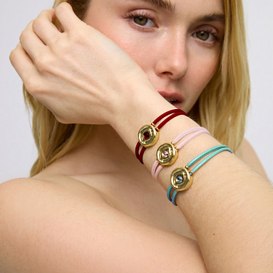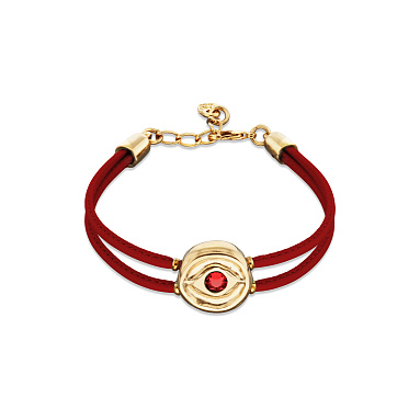 Кожаный браслет глаз Ser Intuitiva с красным кристаллом и золотым напылением — это украшение, наполненное страстью закатного неба и теплом самых трепетных чувств.