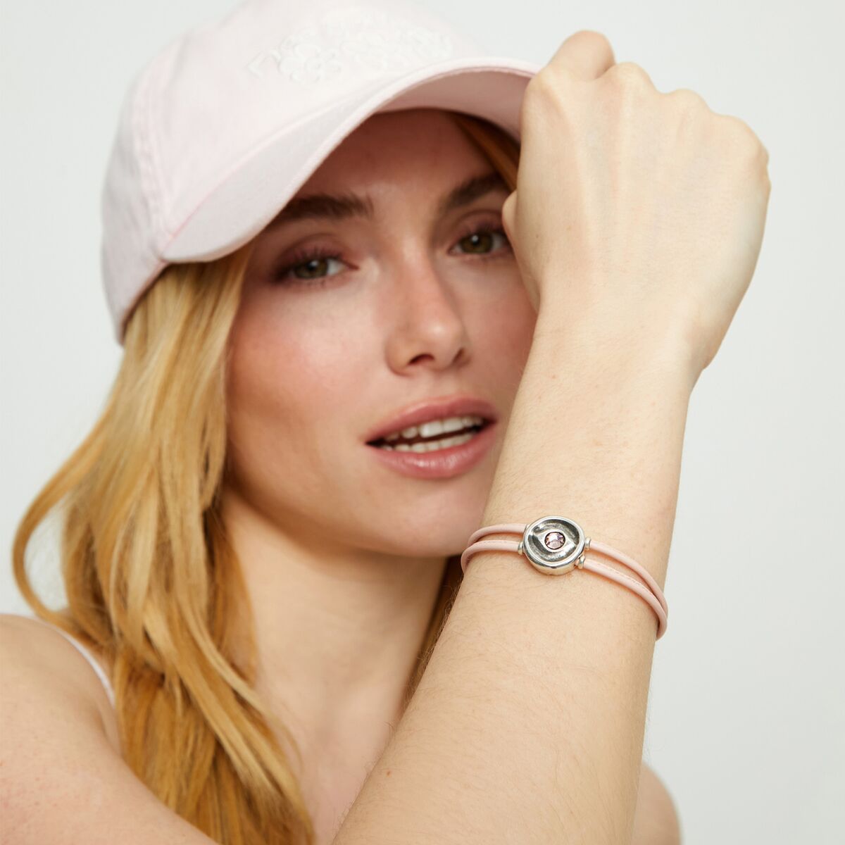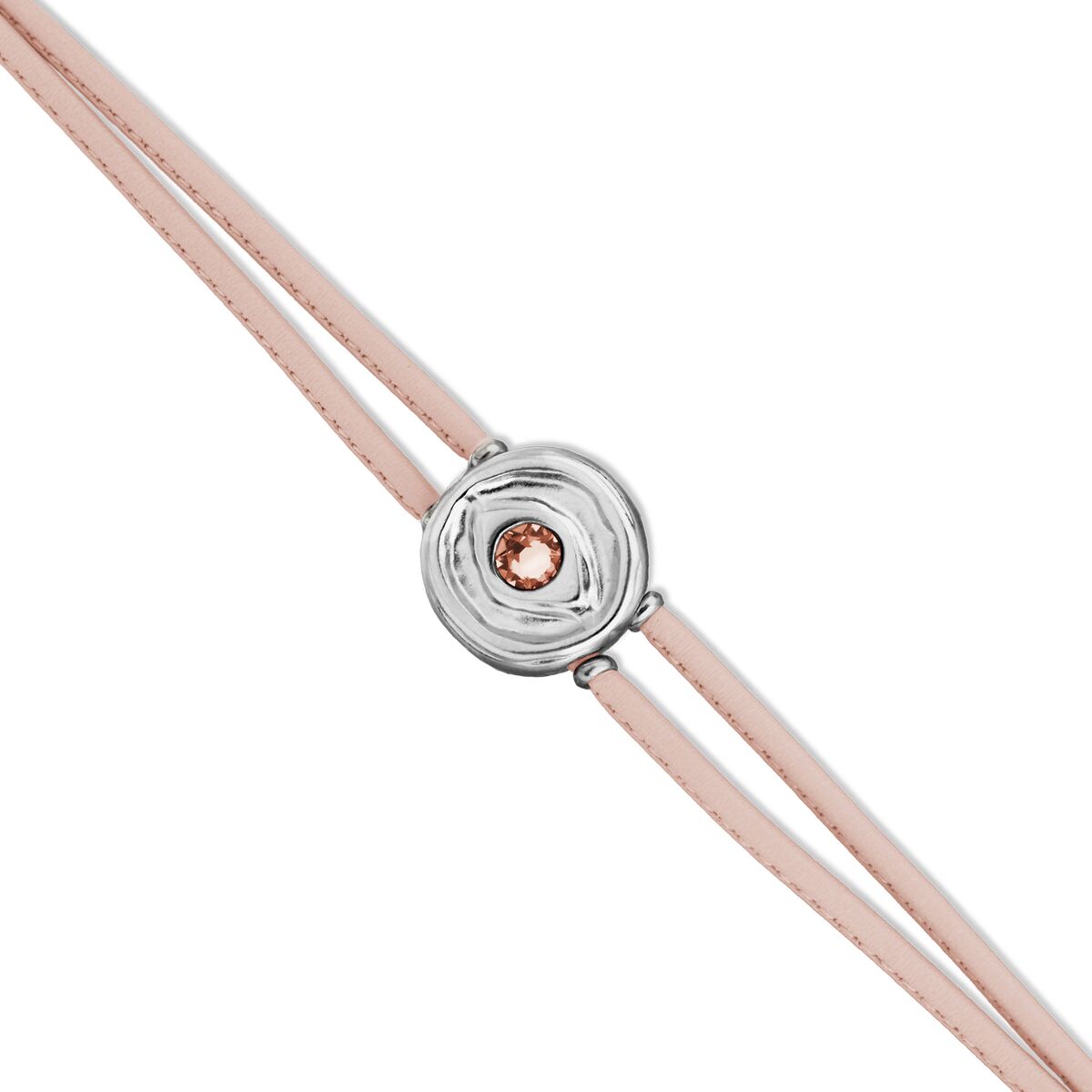 В центре браслета мерцает светло-розовый кристалл — мягкий и прозрачный, как лепесток утренней розы, на котором застыли капли росы. Его нежное сияние наполняет образ теплом и романтикой, пробуждая воспоминания о прогулках под звёздами и лёгком биении сердца в моменты, когда всё говорит о любви.