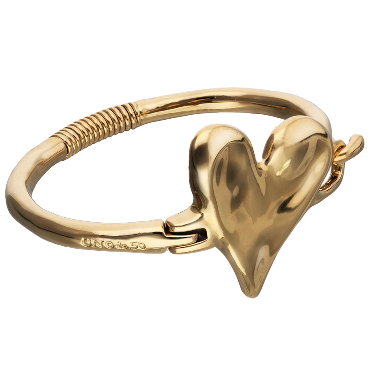 Золотой браслет жесткий с сердцем UnoDe50 Beat