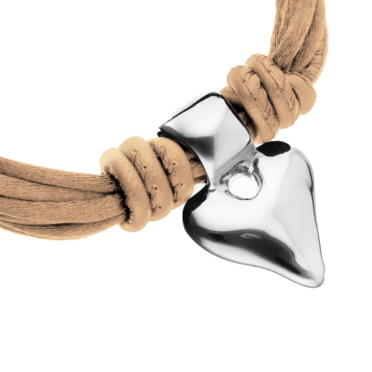 Браслет «Пути» — украшение из коллекции Beat, рассказывающее о перечении судеб. Бежевые кожанные нити переплетаются между собой, образуя узлы, в центре которых — металлическое сердце с серебряным покрытием. Дизайн отсылает к множеству путей, из которых складываются отношения: видимых и скрытых, осознанных и интуитивных.