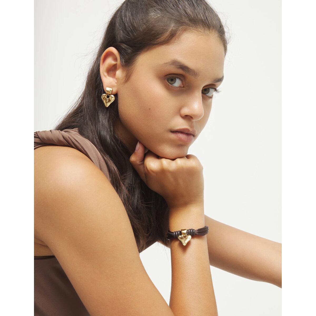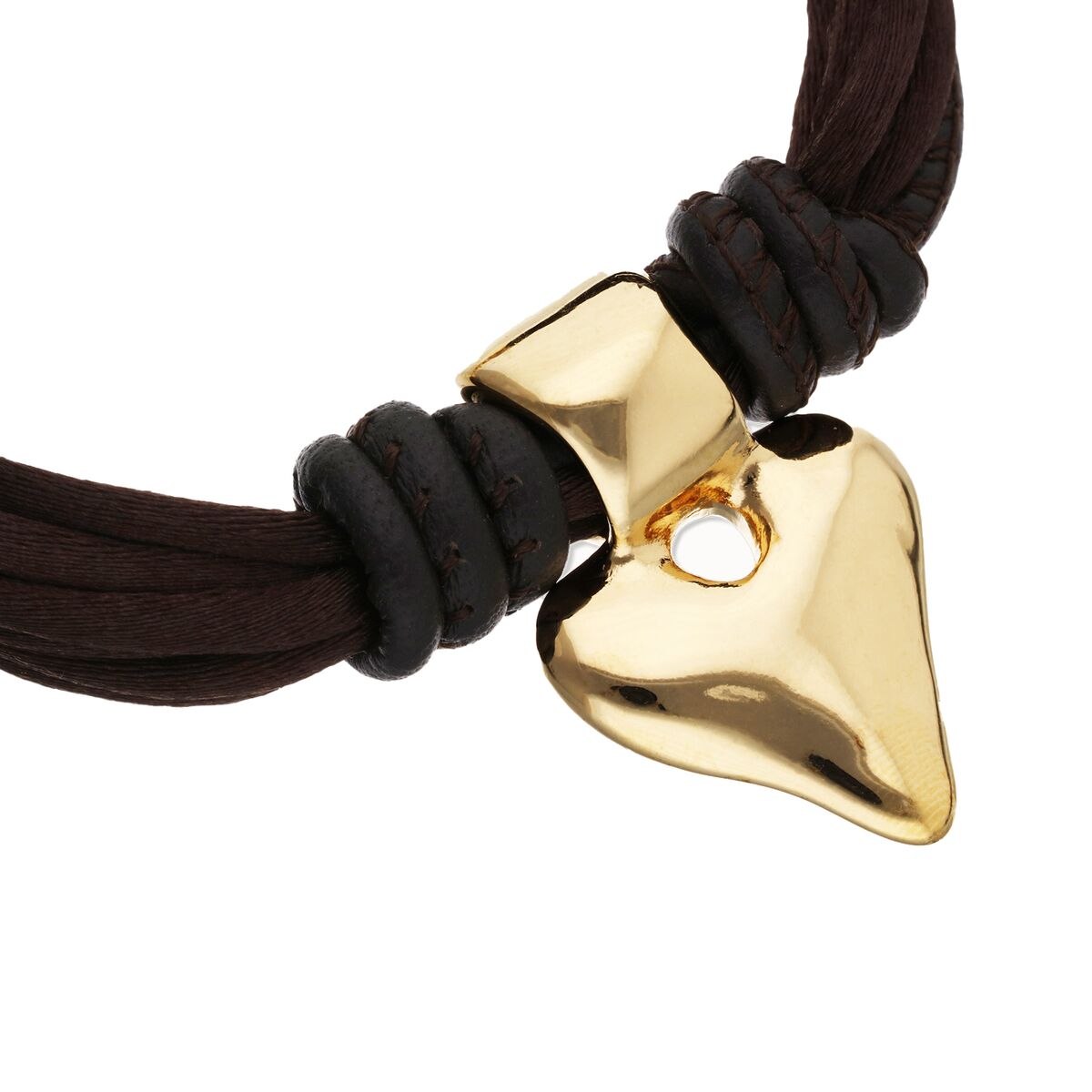Украшение выполнено вручную из натуральной кожи и дополнено металлической деталью в форме сердца из сплава с золотым покрытием. Браслет подойдет для повседневной носки и станет символом уникальности вашей истории.