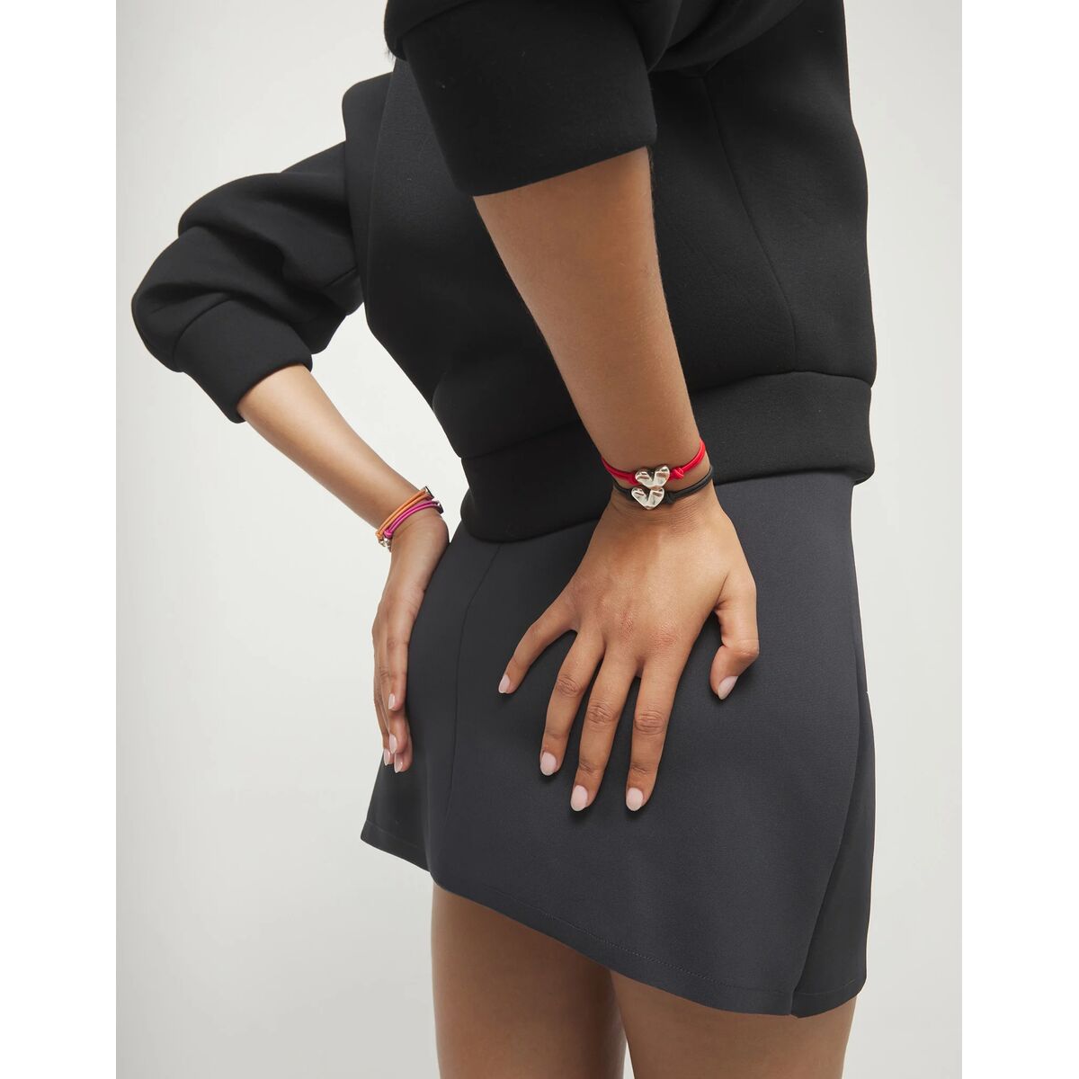 Браслет «Контакт» — украшение из коллекции Beat, рассказывающее о моменте соприкосновения, с которого все начинается. Мягкий черный шнур задает метафору сдержанного, уверенного характера контакта в отношениях — без лишних жестов и слов. Металлический элемент посередине становится символом начала — первым жестом и откликом. Этот браслет про разный характер первой встречи двух сердец.