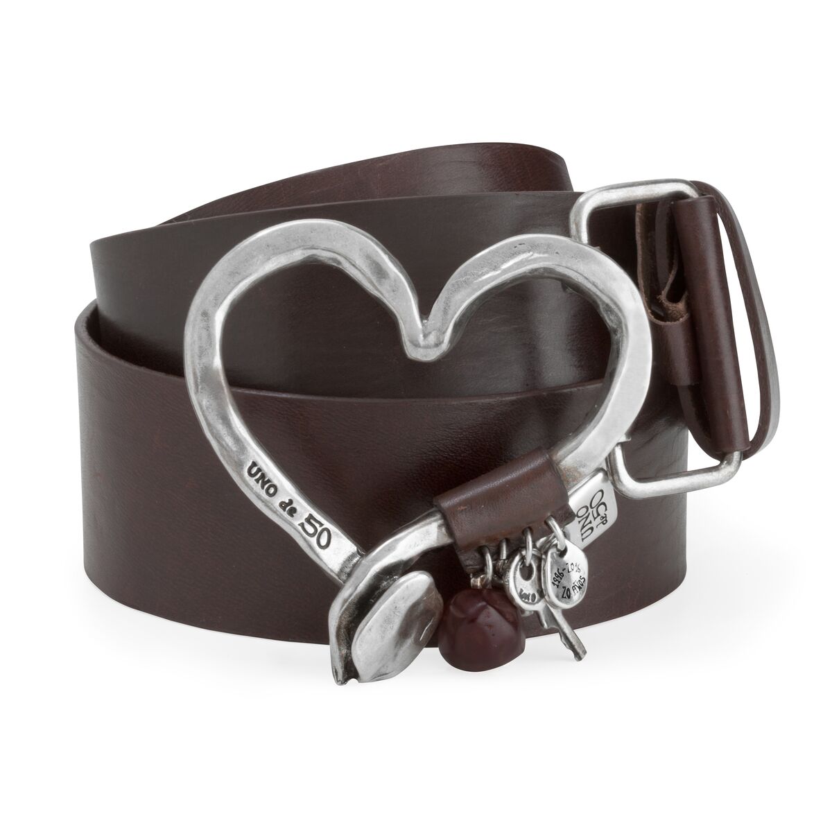 Кожаный ремень женский коричневый с сердцем UNOde50 Love at first sight (2012)