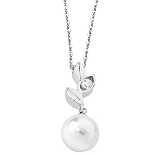Серебряное колье с подвеской из органического жемчуга и фианитами Majorica Selene