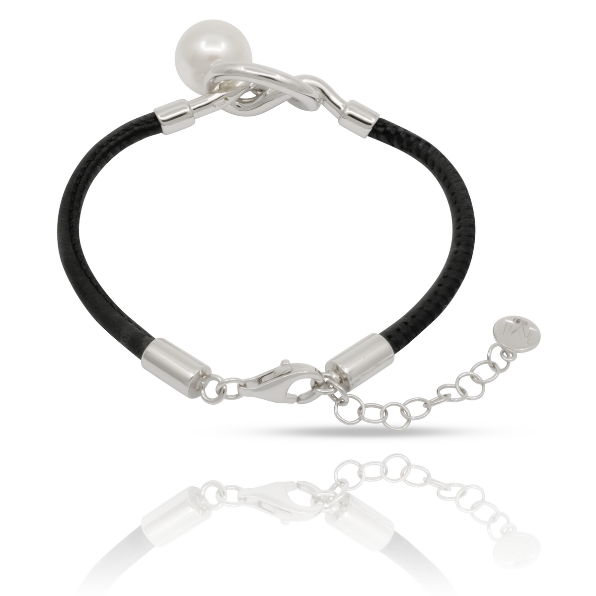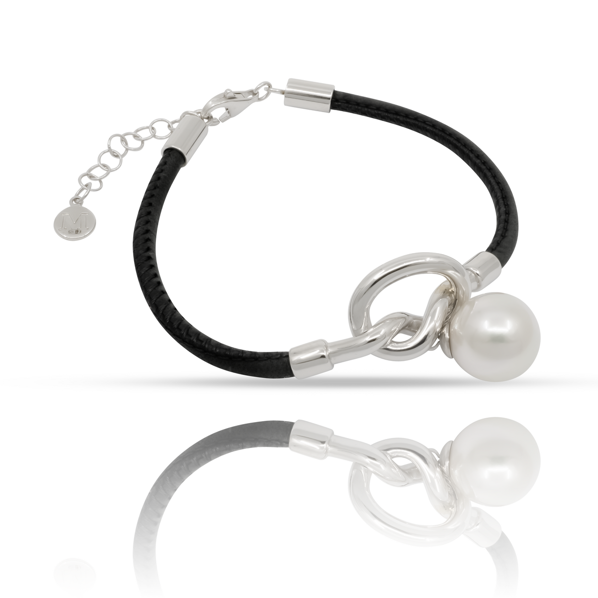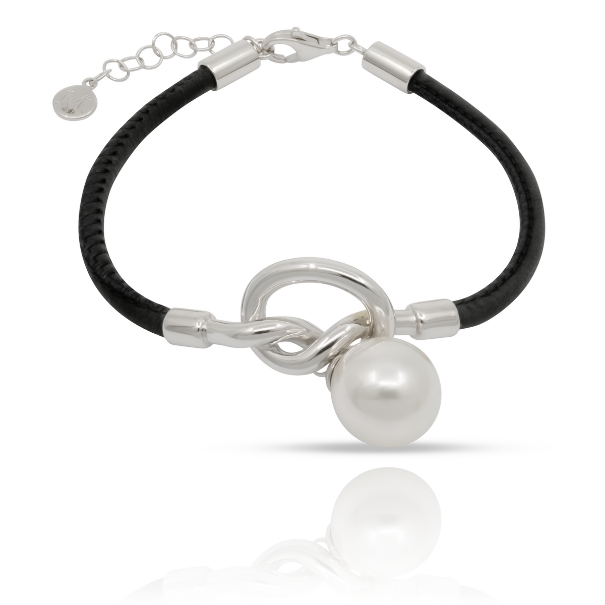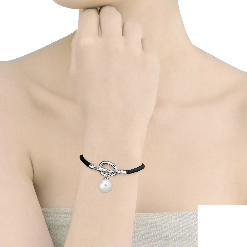 Описание Серебряный браслет с жемчугом и натуральной кожей Majorica Isla