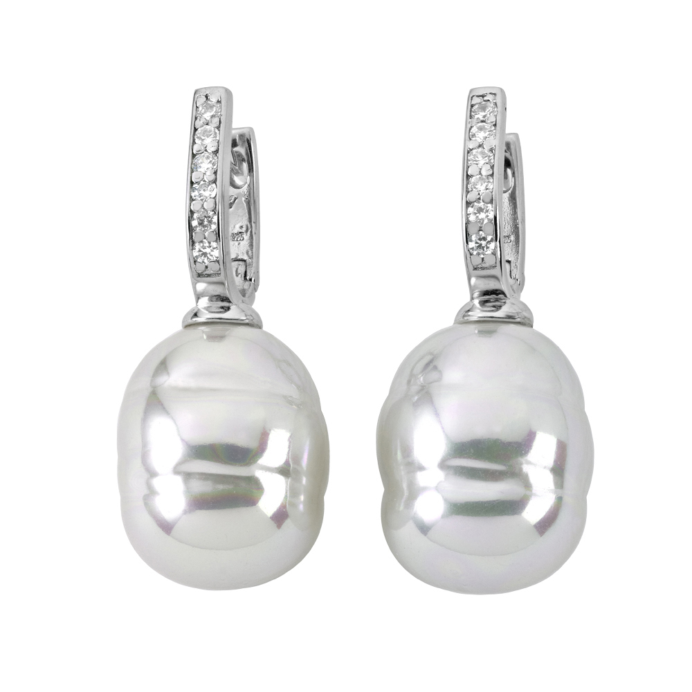 Серебряные серьги с барочным жемчугом и фианитами Majorica Baroque