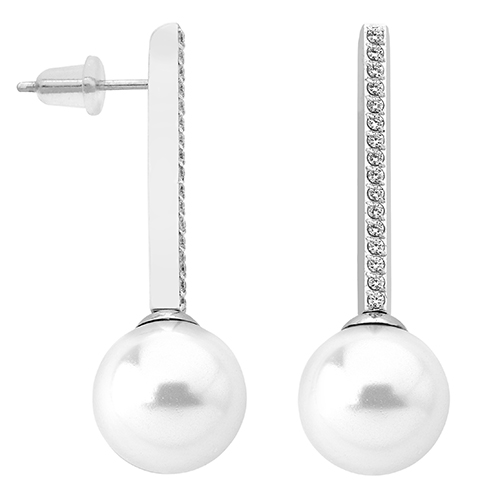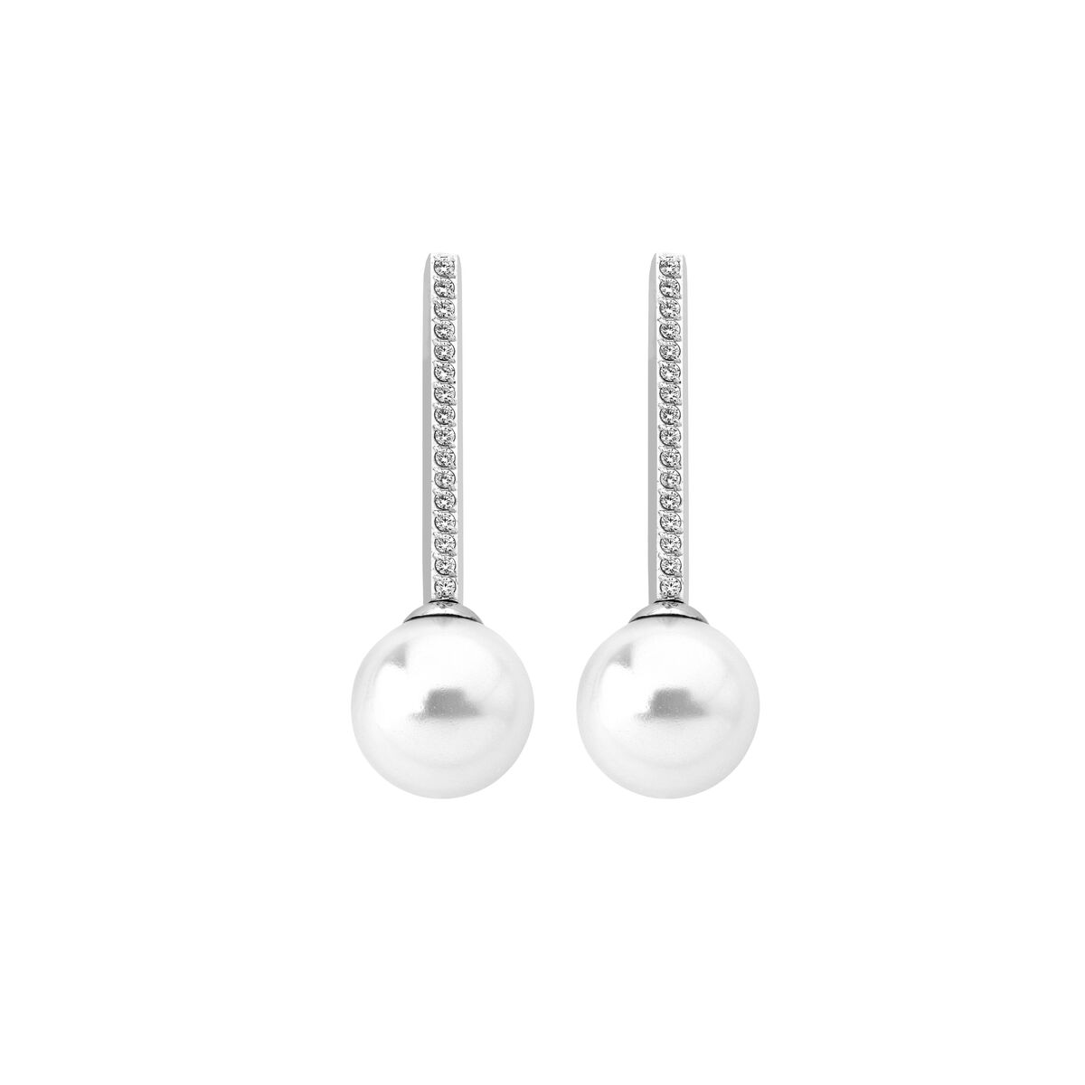 Серебряные серьги с белым жемчугом и кубиками циркония Majorica Enchantment