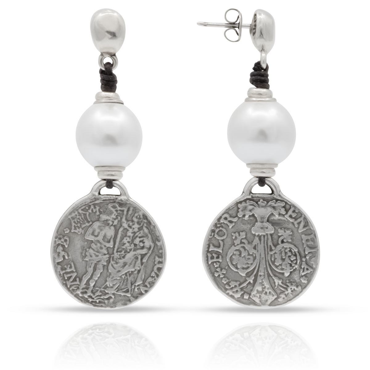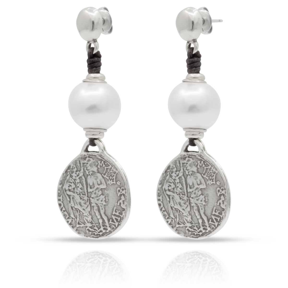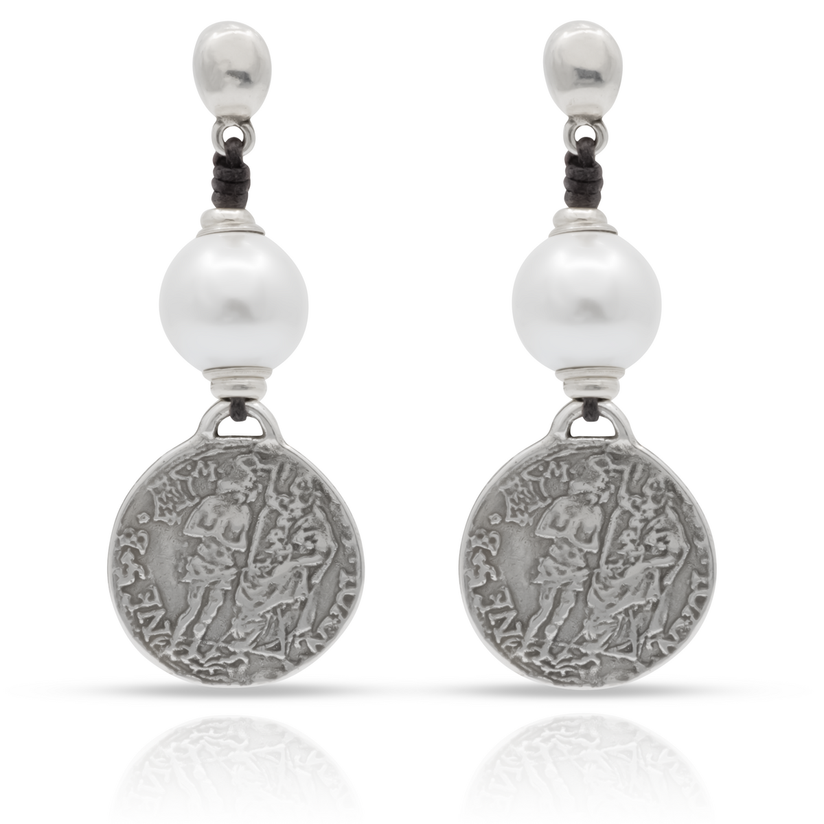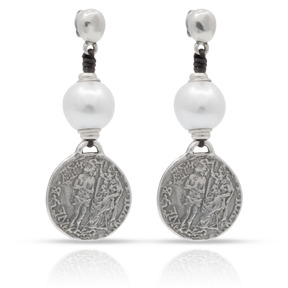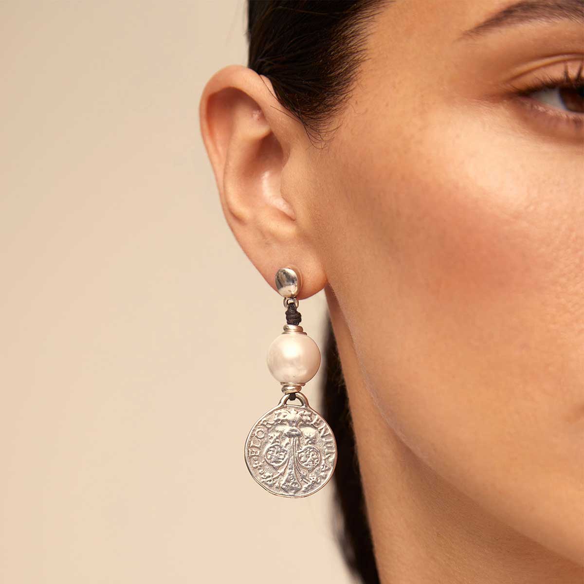 Уникальное украшение ручной работы, женские серьги, украшенные жемчужиной и подвеской в виде старинной монеты.
