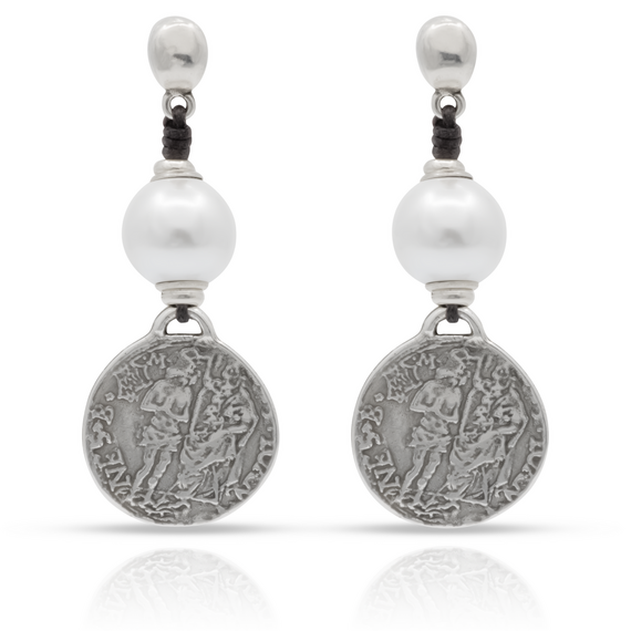 Серебряные серьги висячие с жемчугом Александрия UNOde50 Alexandria