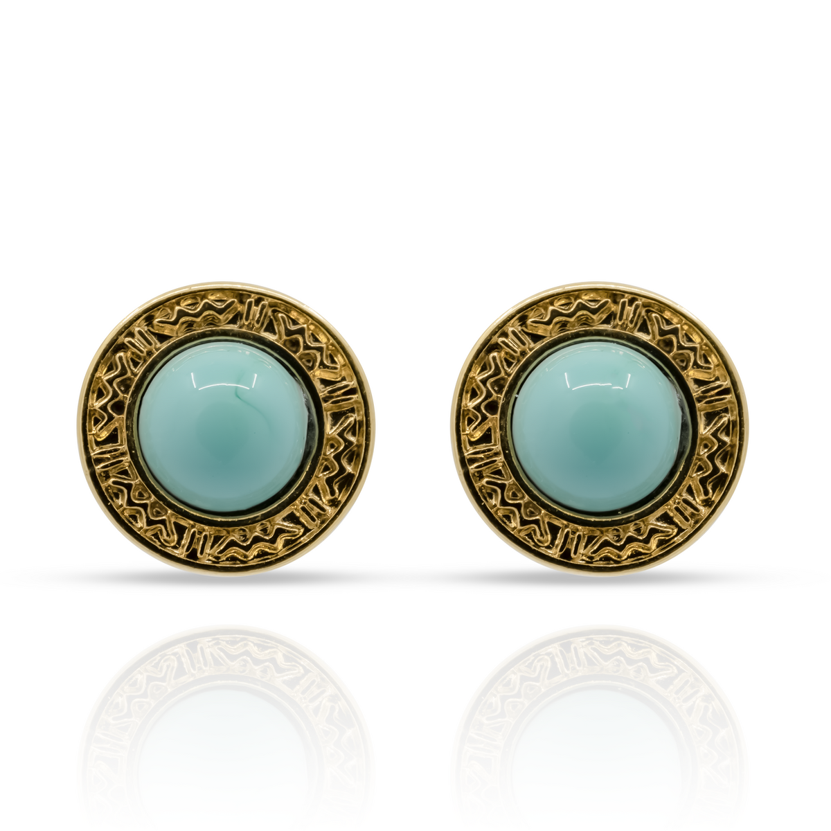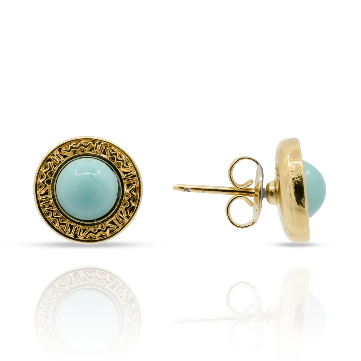 Золотые серьги гвоздики бирюзовые Ciclon Sinaloa