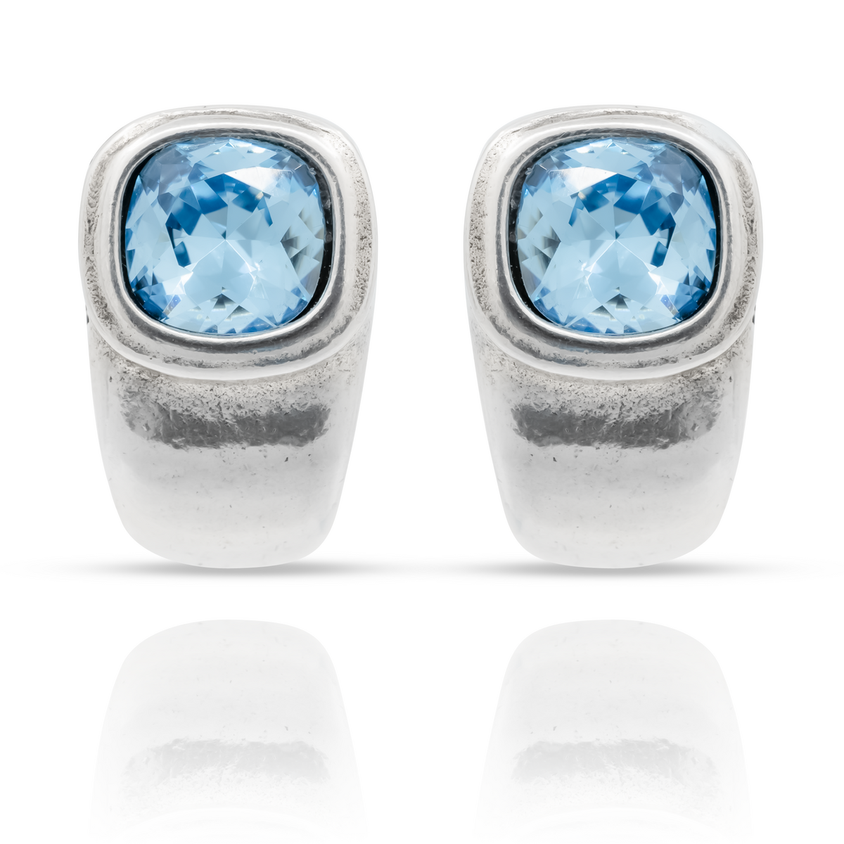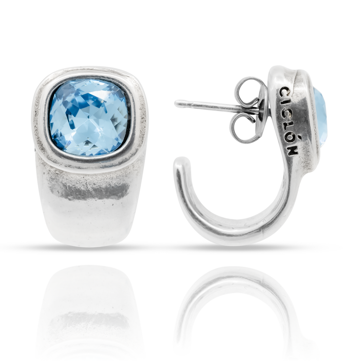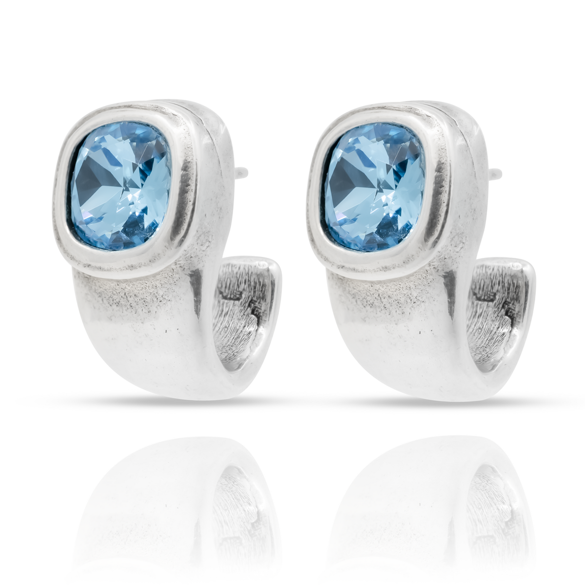 Описание Серебряные серьги гвоздики с кристаллами Сваровски голубые Ciclon Solitarios