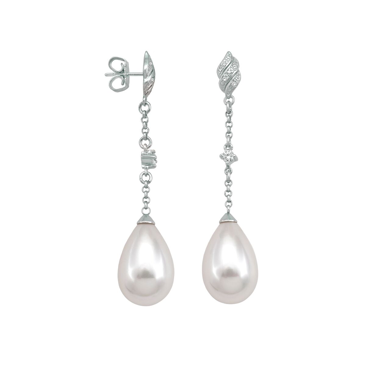 Серебряные серьги с органическим жемчугом и кубиками циркония Majorica Exquisite