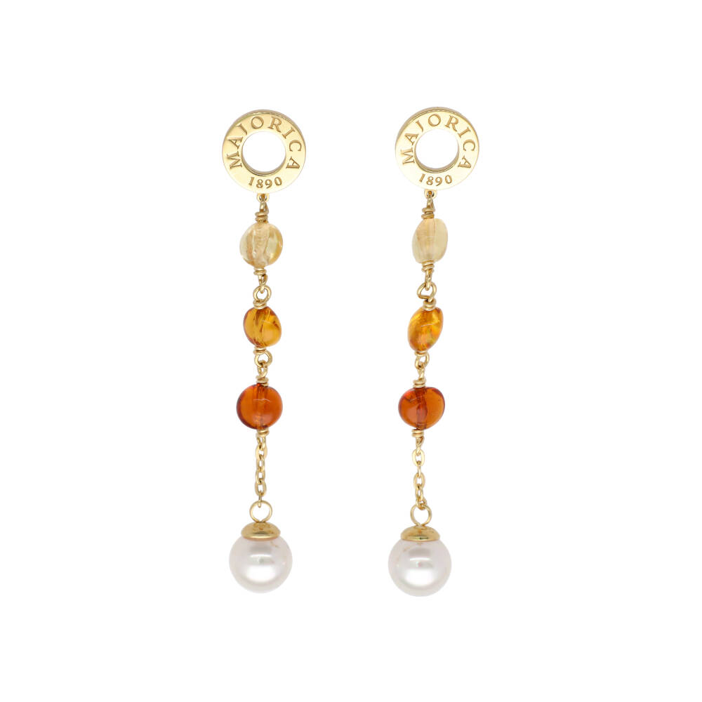 Золотые cерьги длинные с белым жемчугом Majorica Murano
