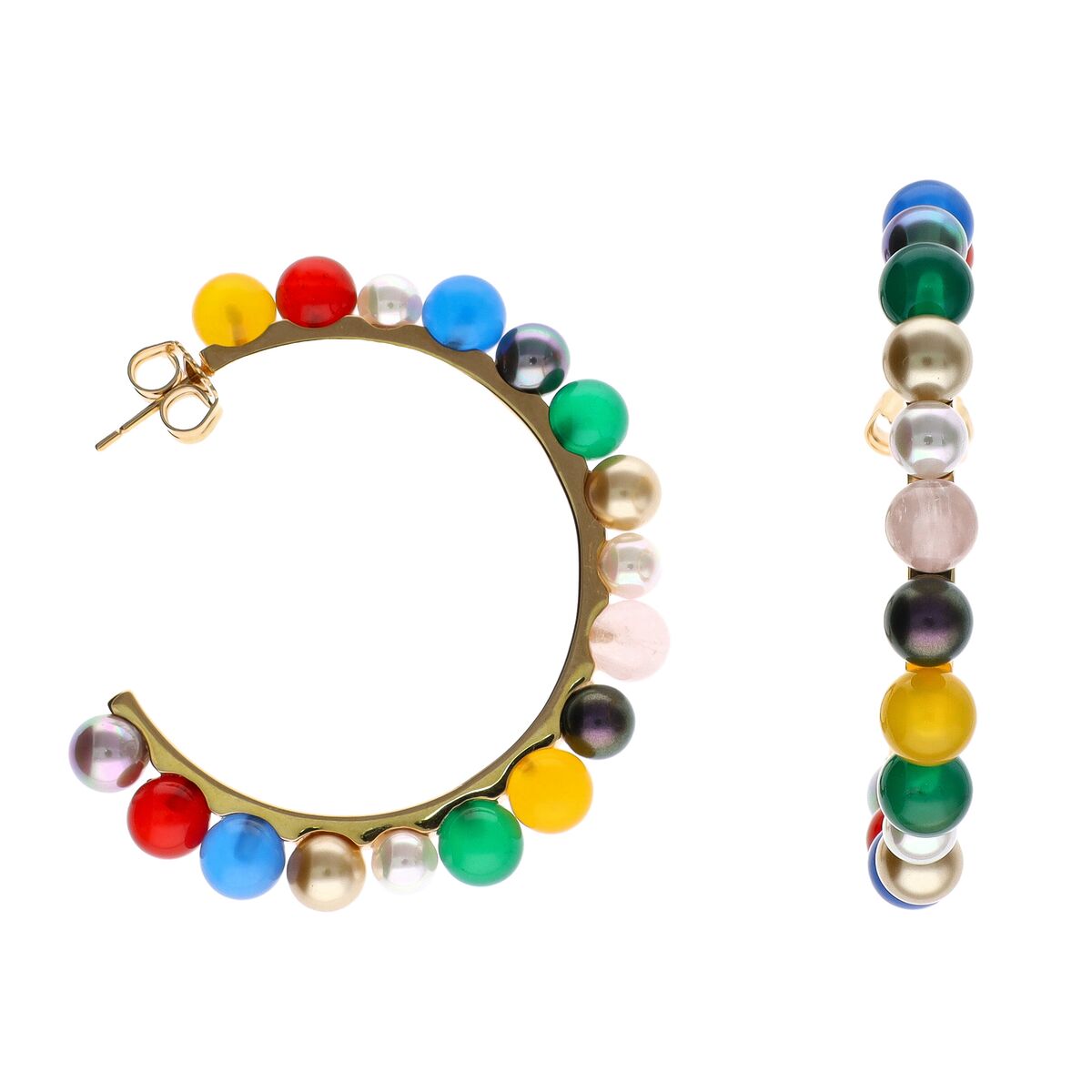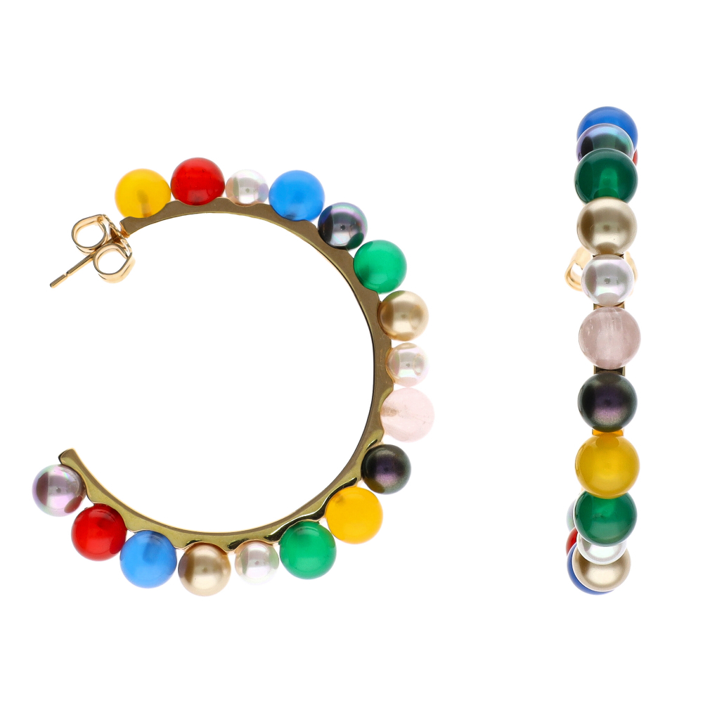 Золотые серьги кольца с органическим жемчугом Majorica Tutti Frutti