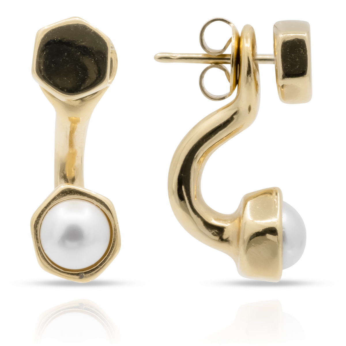 Золотые серьги женские с жемчугом двойные UNOde50 Meant to Be