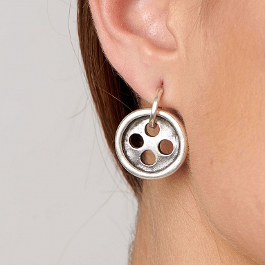 Описание Серебряные серьги висячие Иголка с пуговицей UNOde50 Needle and button