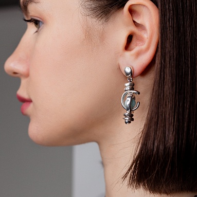 Описание Серебряные серьги женские висячие с амозонитом Unode50 Planets