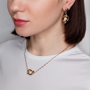 Золотые серьги женские с речным жемчугом длинные UNOde50 Planets