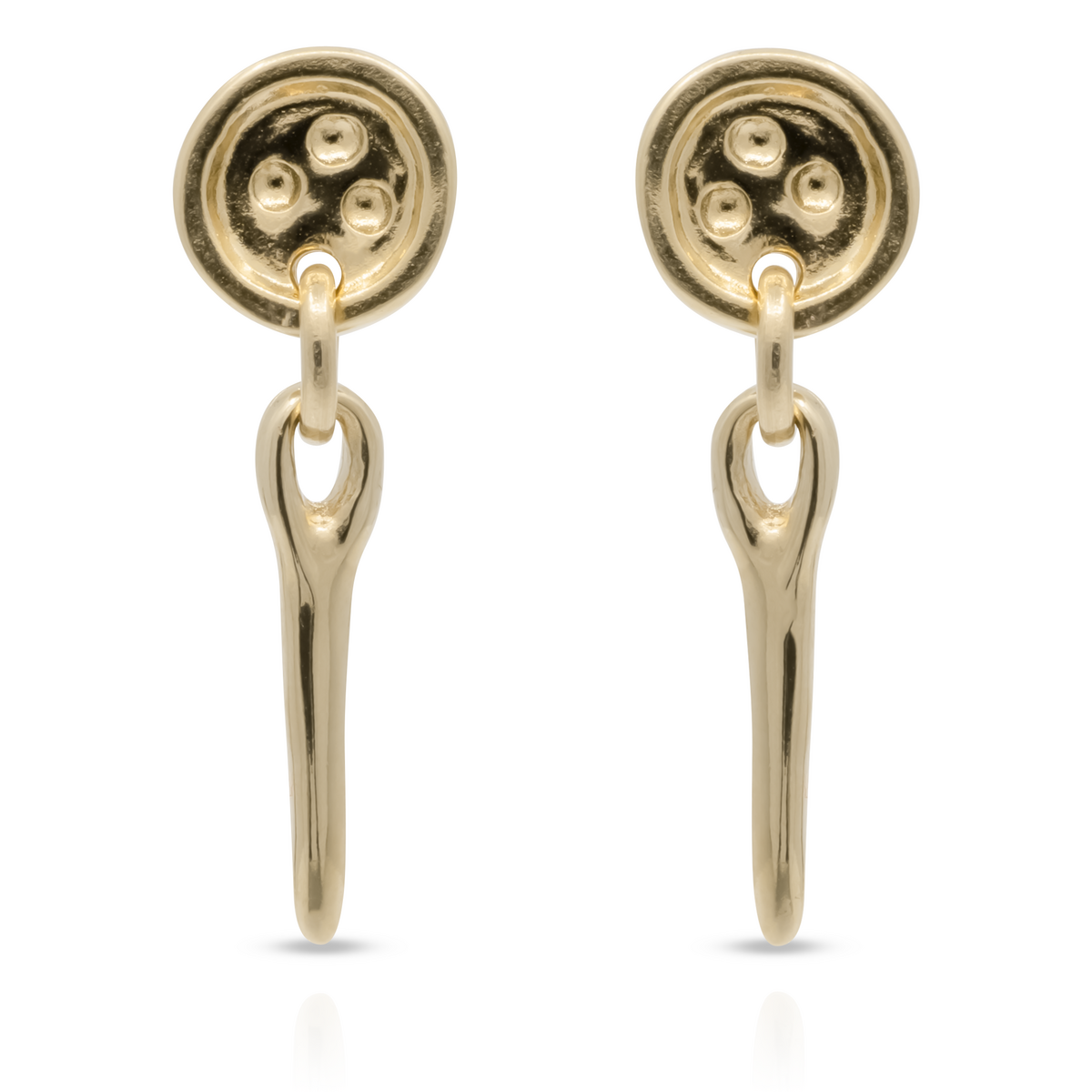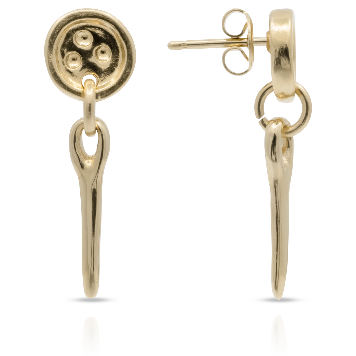 Описание Золотые серьги женские висячие пуговка и иголка UnoDe50 Sewn