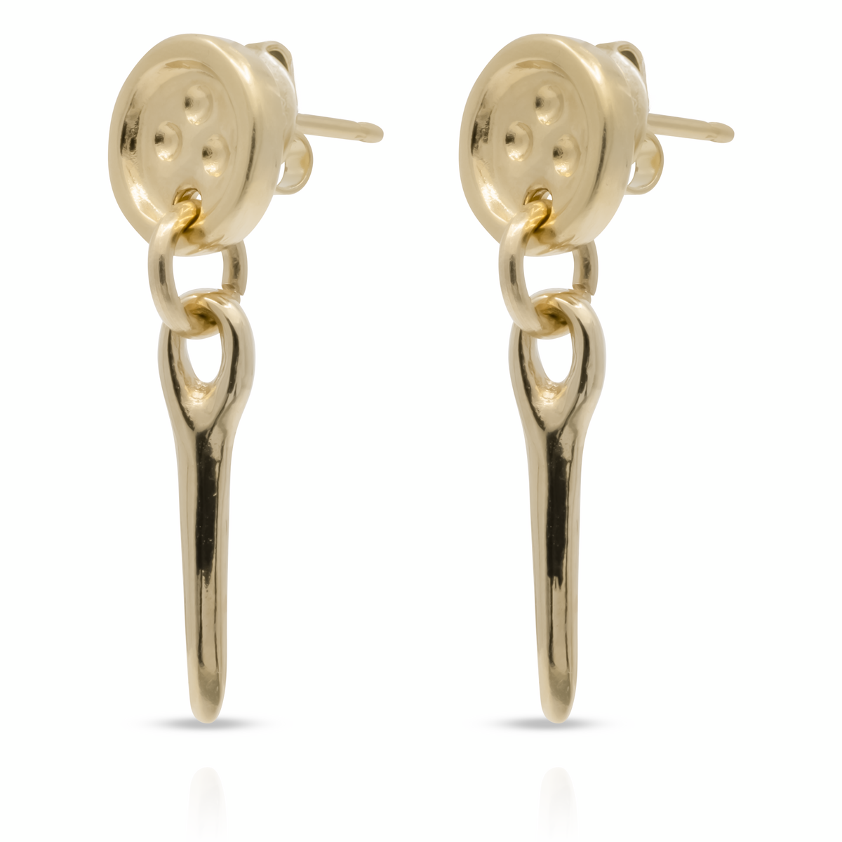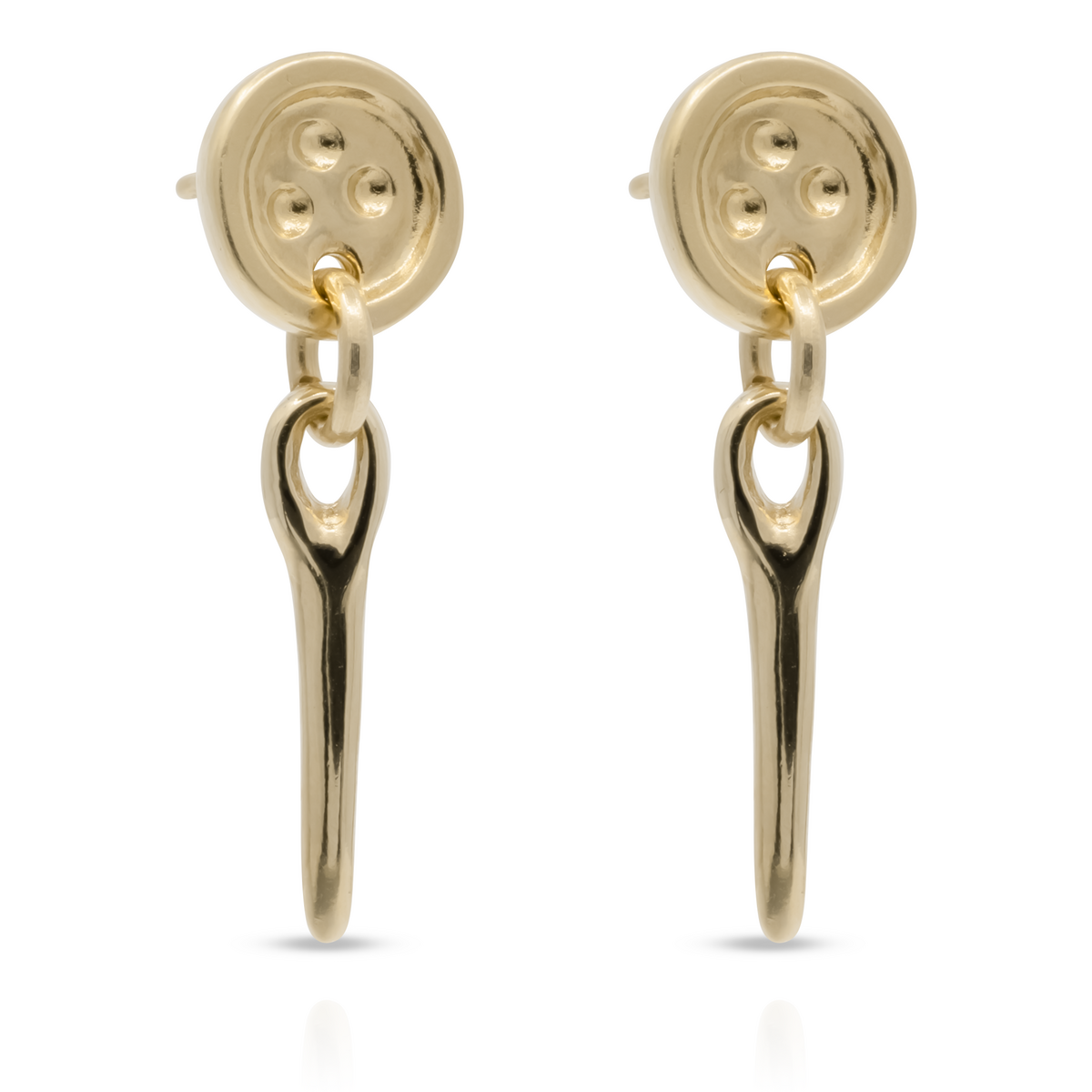 Золотые серьги женские висячие пуговка и иголка UnoDe50 Sewn