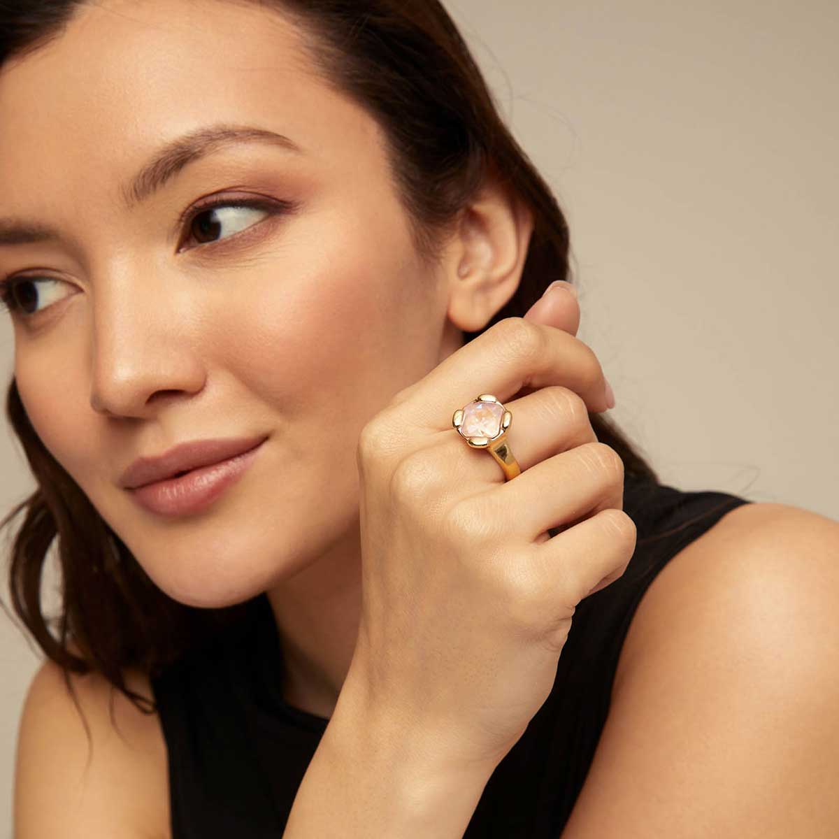 Золотое кольцо женское с кристаллом Сваровски UNOde50 Rock n´pink