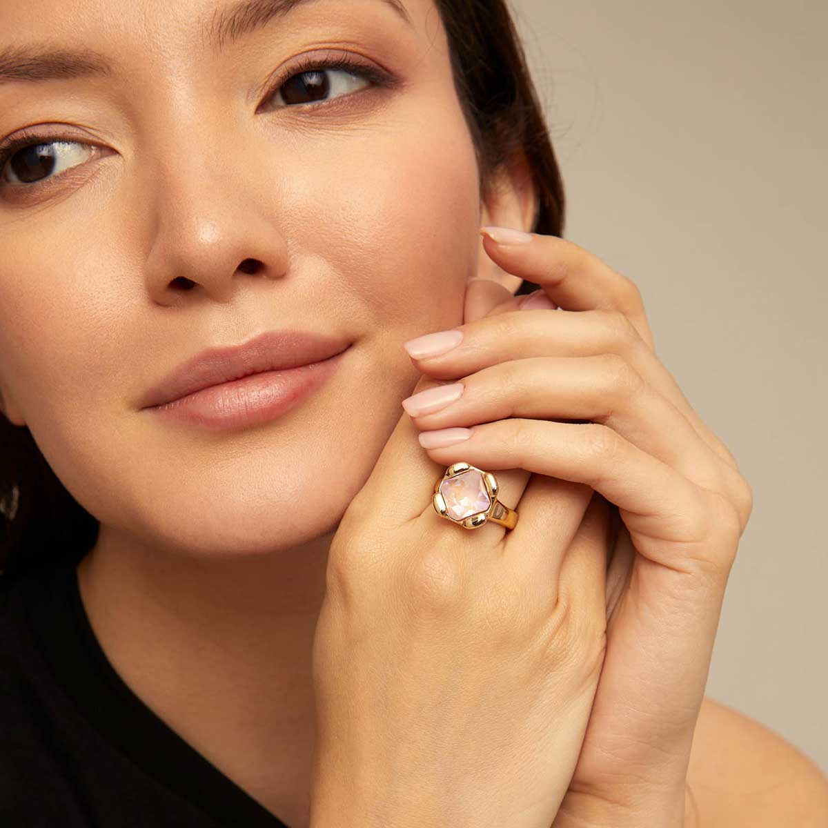 Особенности Золотое кольцо женское с кристаллом Сваровски UNOde50 Rock n´pink